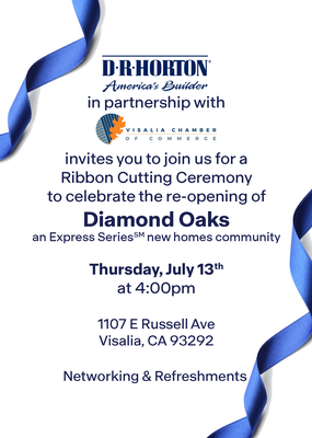 Join D.R Horton Central Valley for a ribbon cutting in celebration of the re-opening of Diamond Oaks an Express Series new homes community!