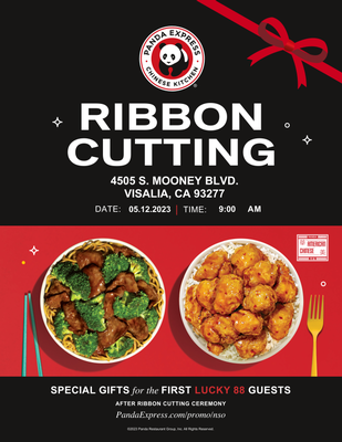 Join us for a ribbon cutting in celebration of Visalia's newest Panda Express! The new location features a double-drive thru.