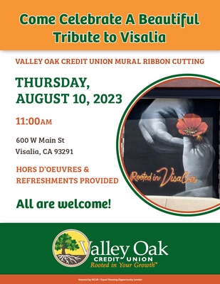 Join Valley Oak Credit Union for a ribbon cutting in celebration of their mural, dedicated to the community of Visalia.