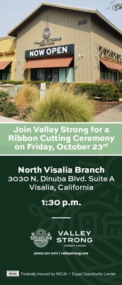 Join Valley Strong Credit Union for a Ribbon Cutting for their grand opening of their North Visalia Branch!